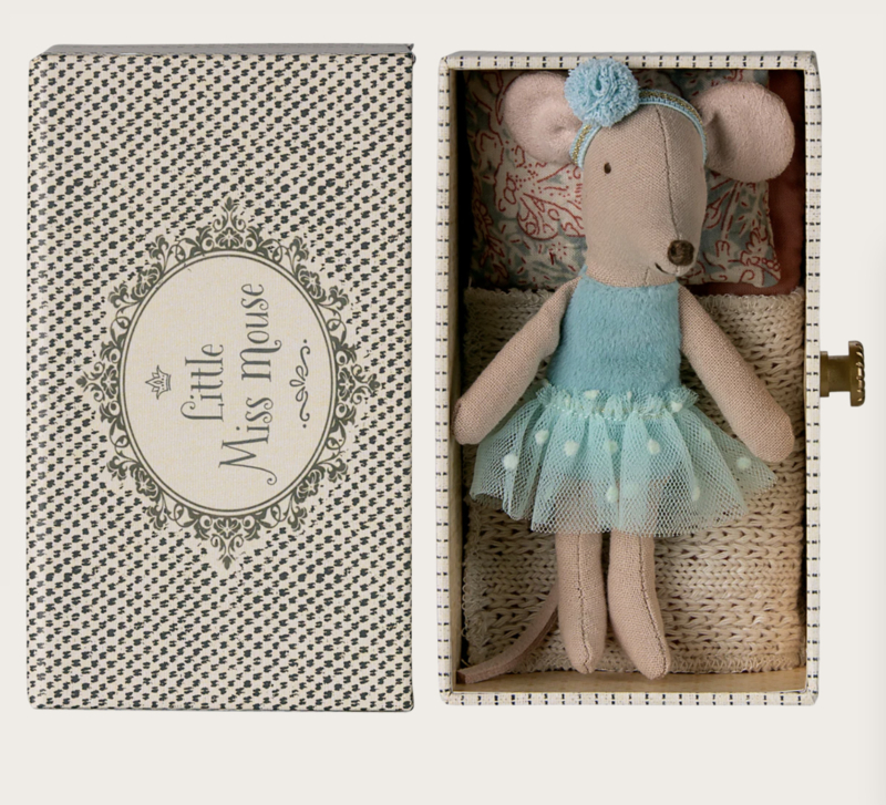 Het is belangrijk om na een dansles een plek te hebben om uit te rusten. Dit kleine zusje muisje wordt geleverd in een mooie doos die ze als dagbedje kan gebruiken. Stof kan variëren.